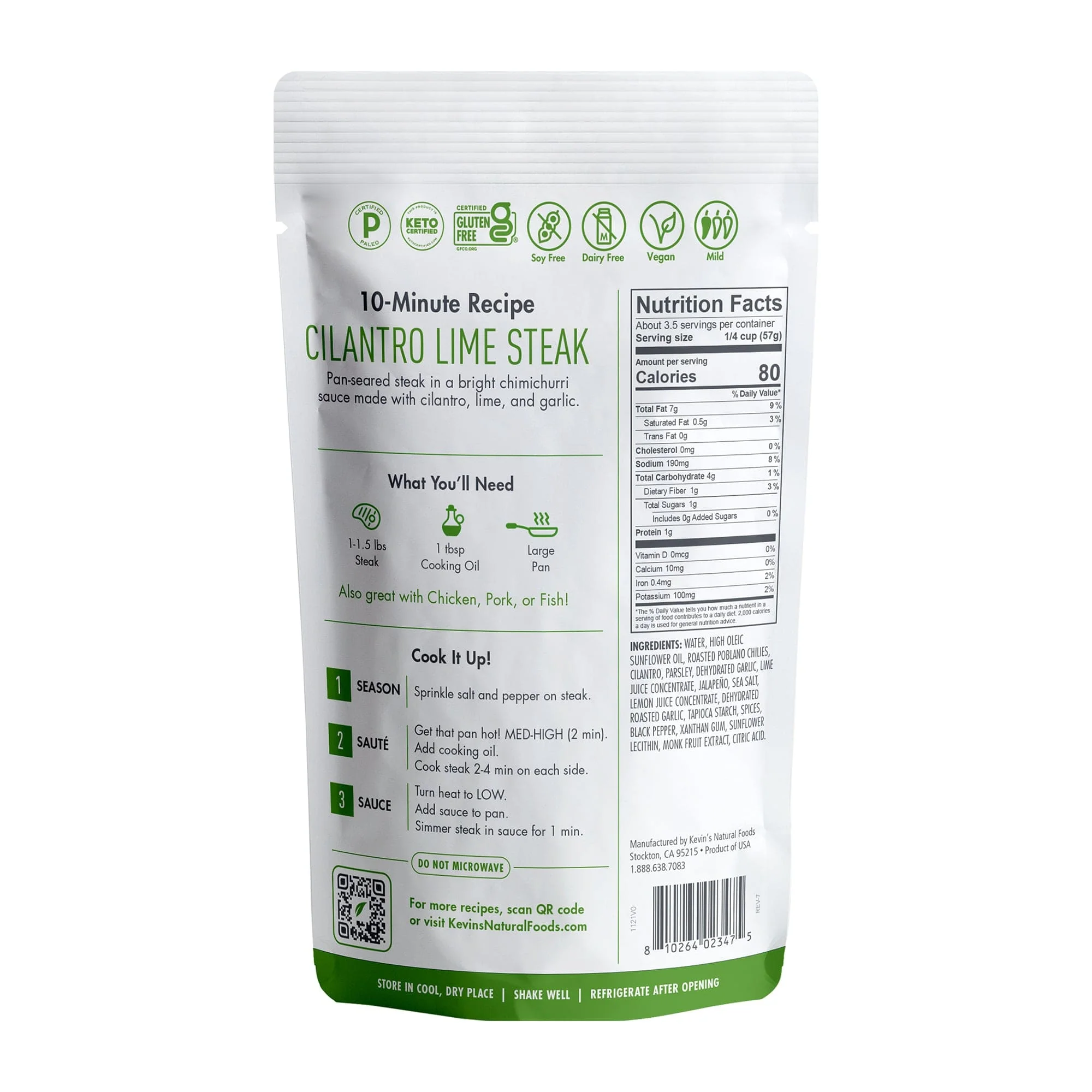 A bright chimichurri sauce made with cilantro, lime, and garlic. Give your chicken, steak or seafood an unexpected but totally satisfying kick.